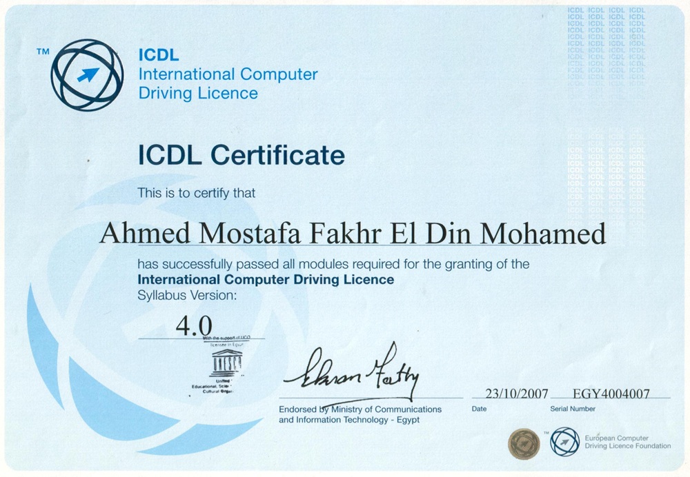 شهادة ICDL، الرخصة الدولية لقيادة الحاسوب.
