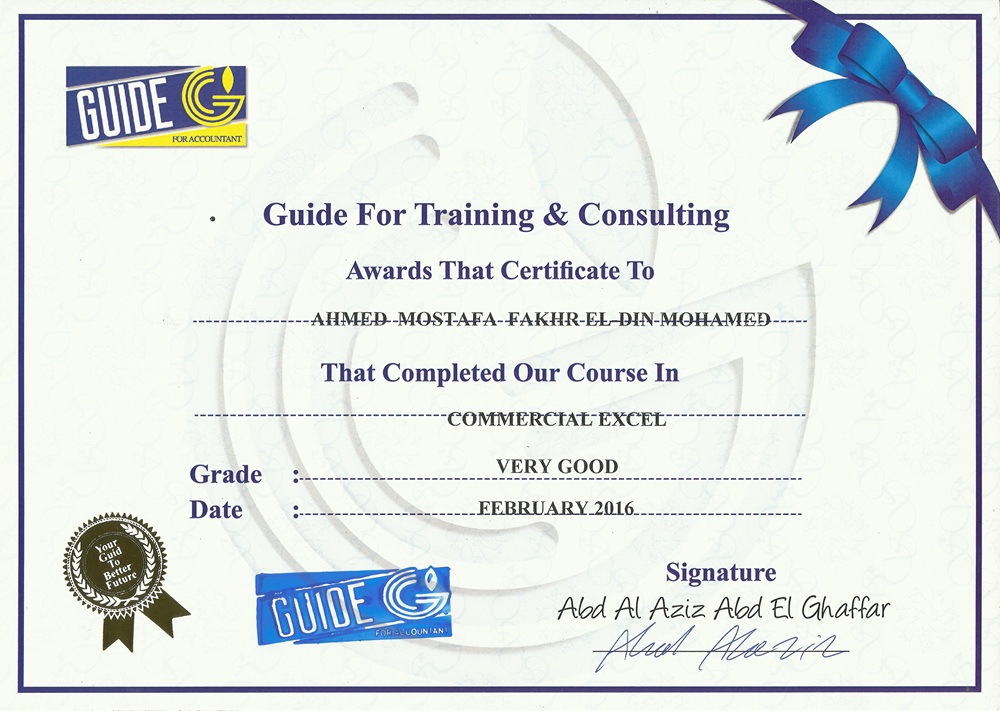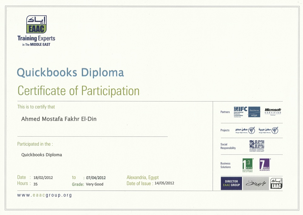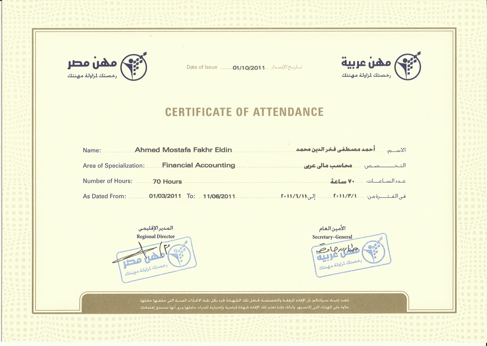 كورس المحاسب المالي العربي مدته 70 ساعة، تناول معالجة الدورة المحاسبية الكاملة لشركة فعلية لمدة عام كامل.